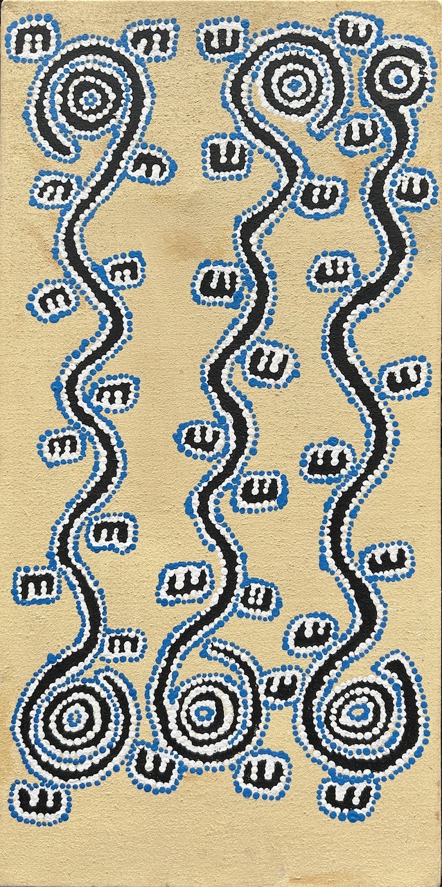 Pauline Sunfly is the daughter of the famous Balgo painters, Sunfly Tjampitjin, and Bai Bai Sunfly Napangarti, from whom she has inherited many Tjukurrpa (Dreamtime) stories. Pauline learnt to paint from years of watching her father. She is an extremely…