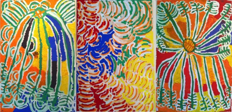 In the Palya Art online gallery. These paintings were exhibited in the Flinders University Museum Exhibition ‘Beyond Wings’ 2001. See individual artworks for details. Enquiries for further details invited to [email protected]