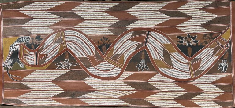 Nyumi’s mother belonged to the country of Nyumi near Kiwirrkurra on the Pintupi side. Her father was from Alyarra in the region of Ngaanyatjarra. When Nyumi was a very young child her mother died at the Kanari soakwater close to…